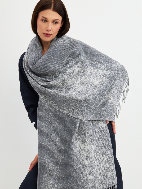 Большой, мягкий, теплый двусторонний однотонный палантин с градиентом переход тона. Края изделия украшены бахромой. Машинная деликатная стирка. Шерсть 10% Модал 55% Вискоза 35%