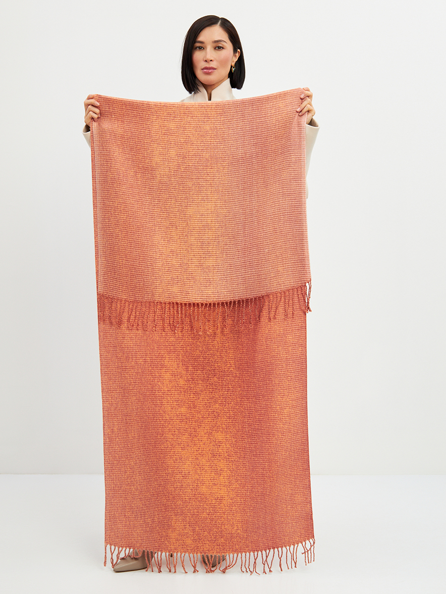 Большой, мягкий, теплый двусторонний однотонный палантин с градиентом переход тона. Края изделия украшены бахромой. Машинная деликатная стирка. Шерсть 10% Модал 55% Вискоза 35%