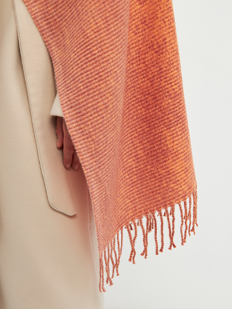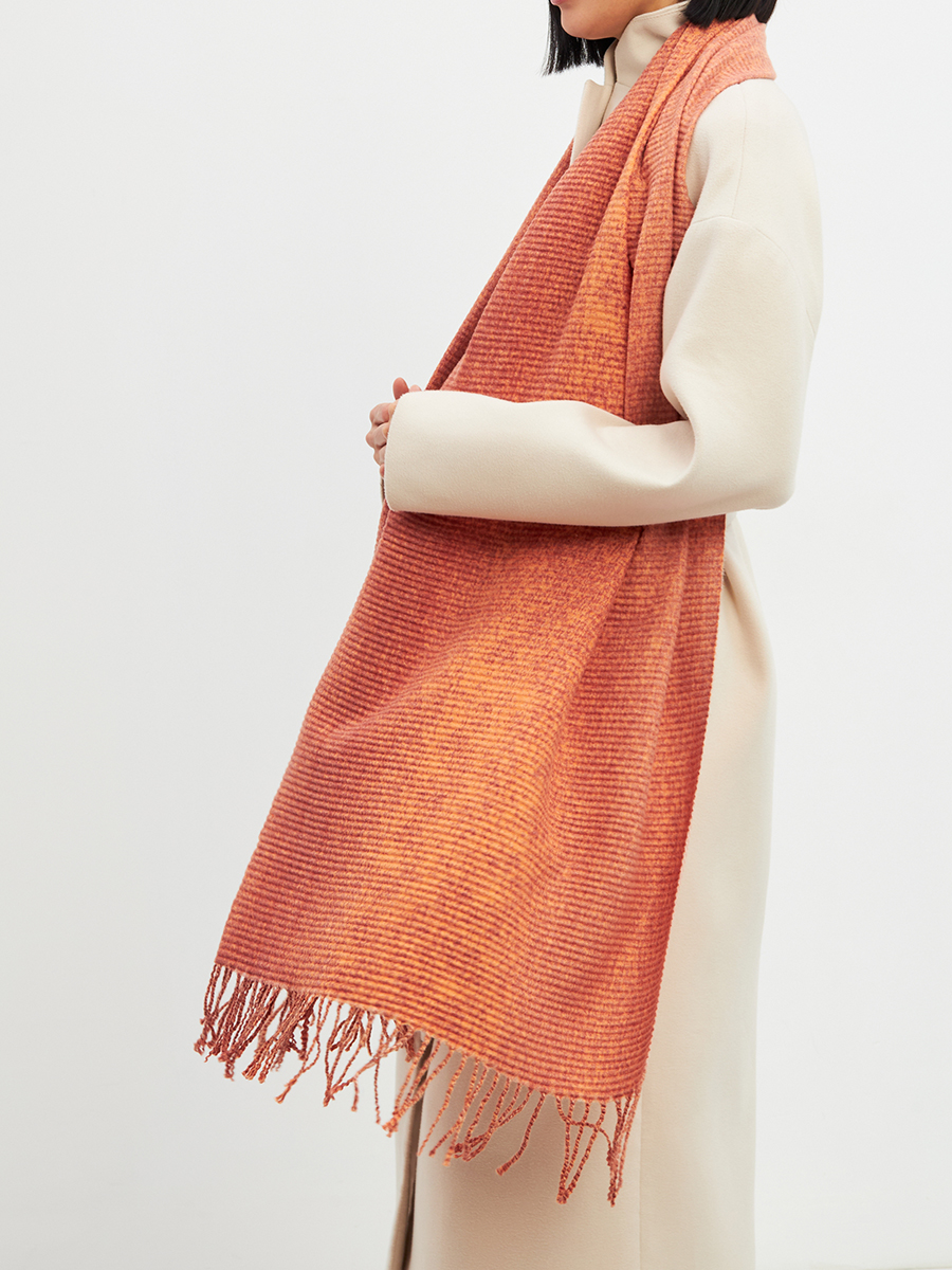 Большой, мягкий, теплый двусторонний однотонный палантин с градиентом переход тона. Края изделия украшены бахромой. Машинная деликатная стирка. Вискоза/ Шерсть/ Модал