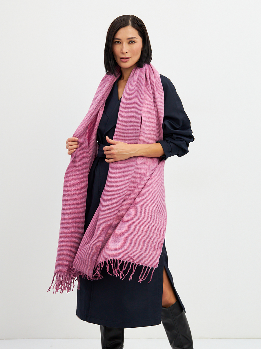 Большой, мягкий, теплый двусторонний однотонный меланжевый палантин. Края изделия украшены кистями. Машинная деликатная стирка. Вискоза/ Шерсть/ Модал