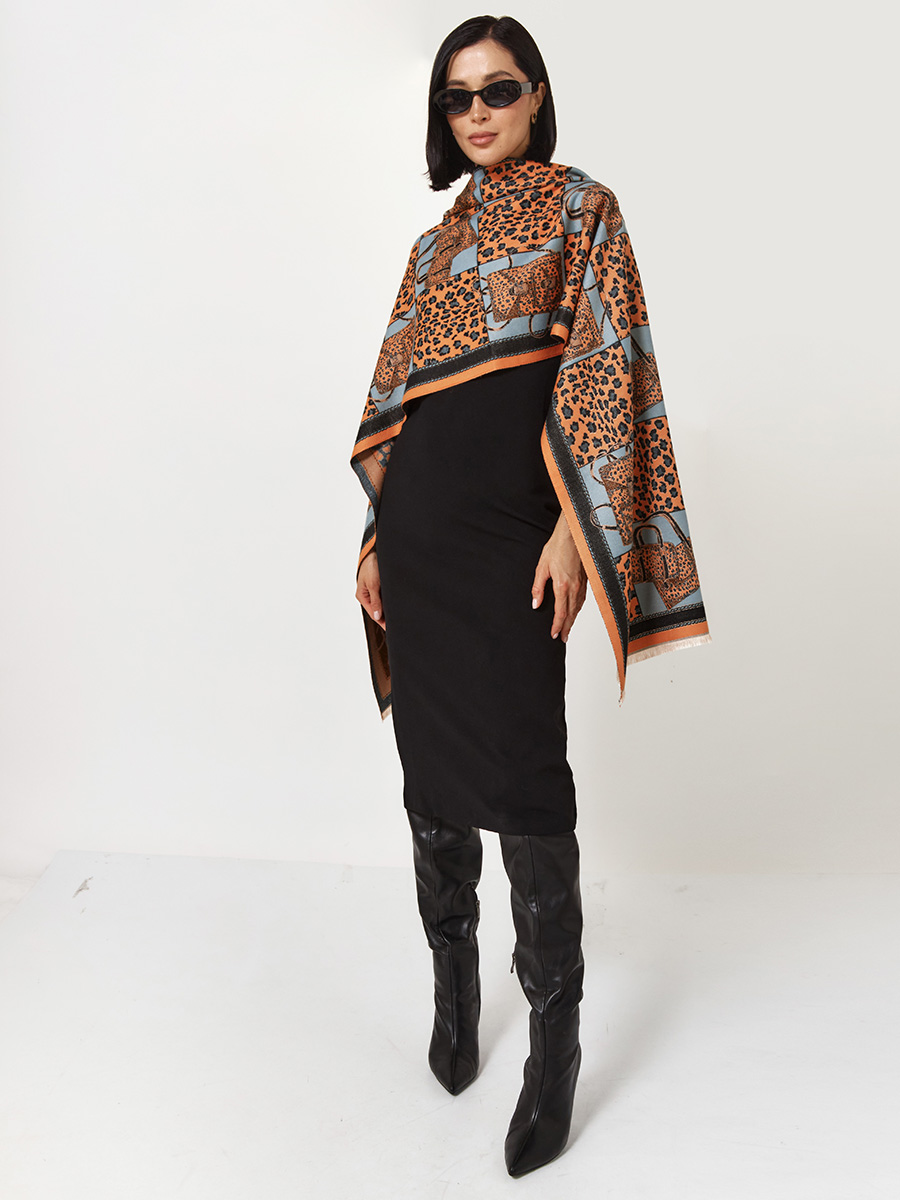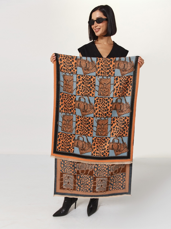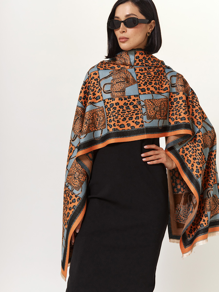 Палантин женский с анималистичным принтом и узором "Сумки"