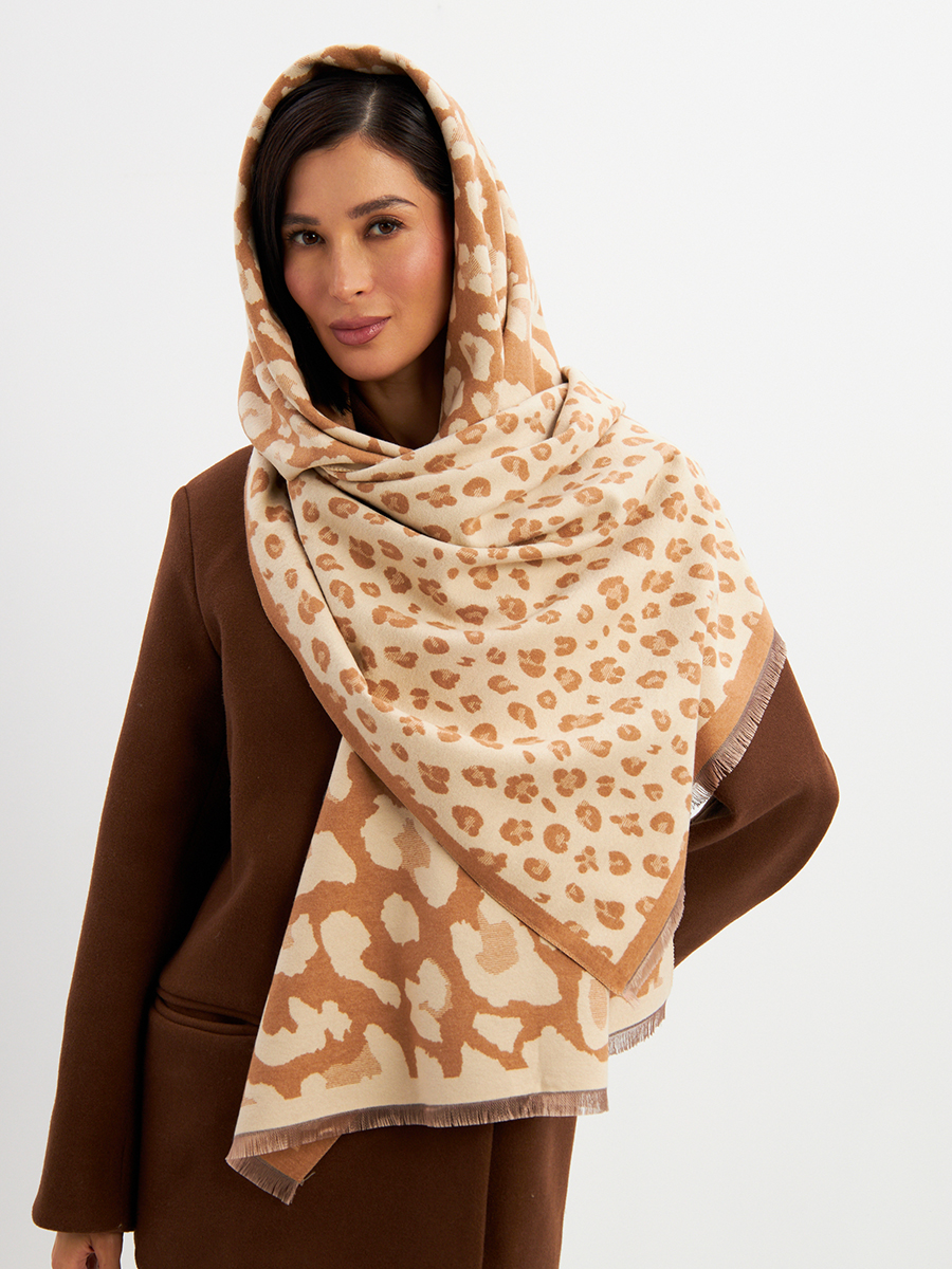 Большой, мягкий, тонкий и очень нежный палантин с рисунком. Края изделия украшены бахромой ручной работы. Машинная деликатная стирка. 45% модал/ 35% вискоза/ 20% шерсть