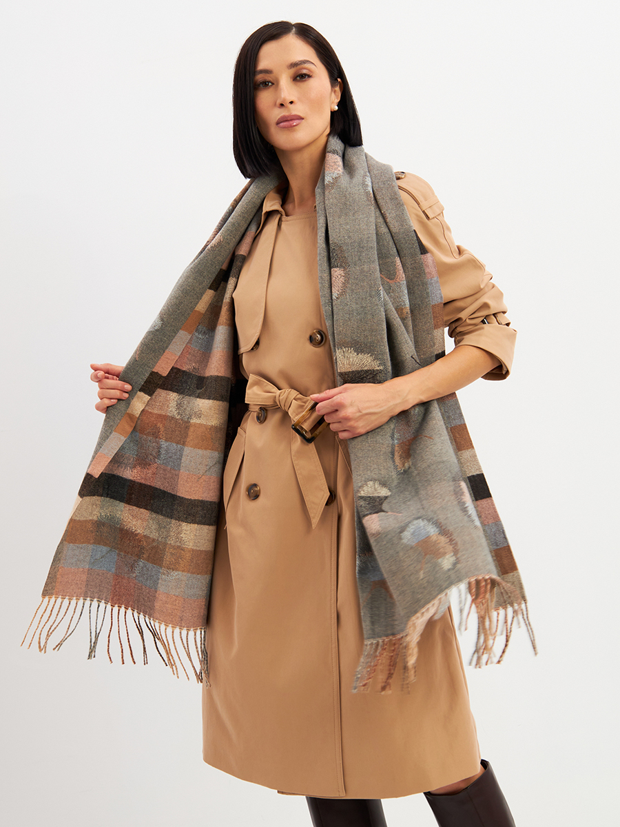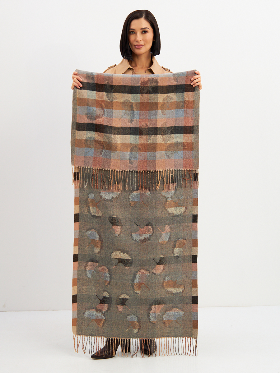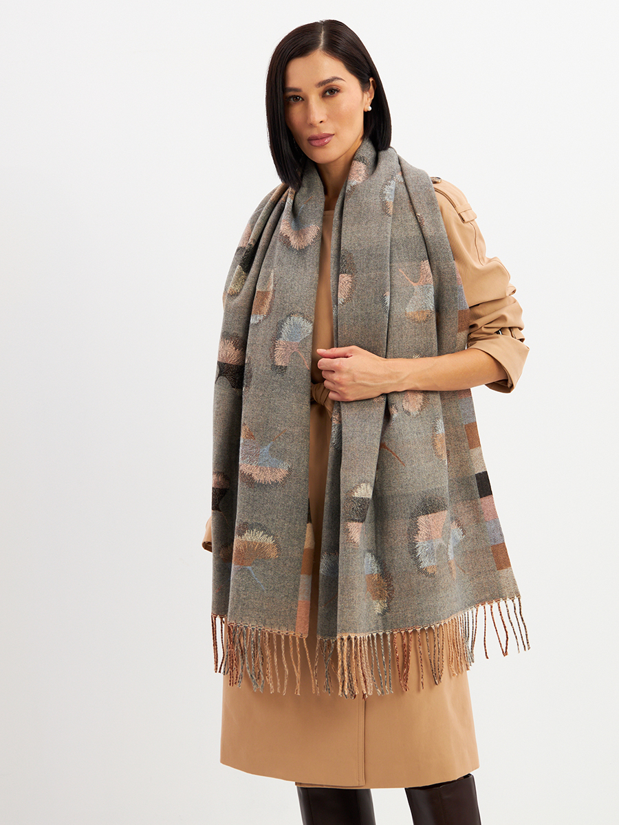 Большой, мягкий, тонкий и очень нежный палантин с рисунком. Края изделия украшены бахромой ручной работы. Машинная деликатная стирка.