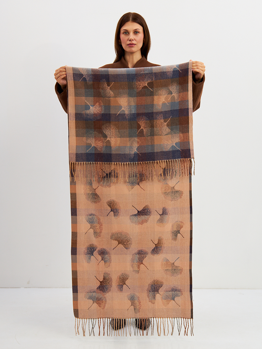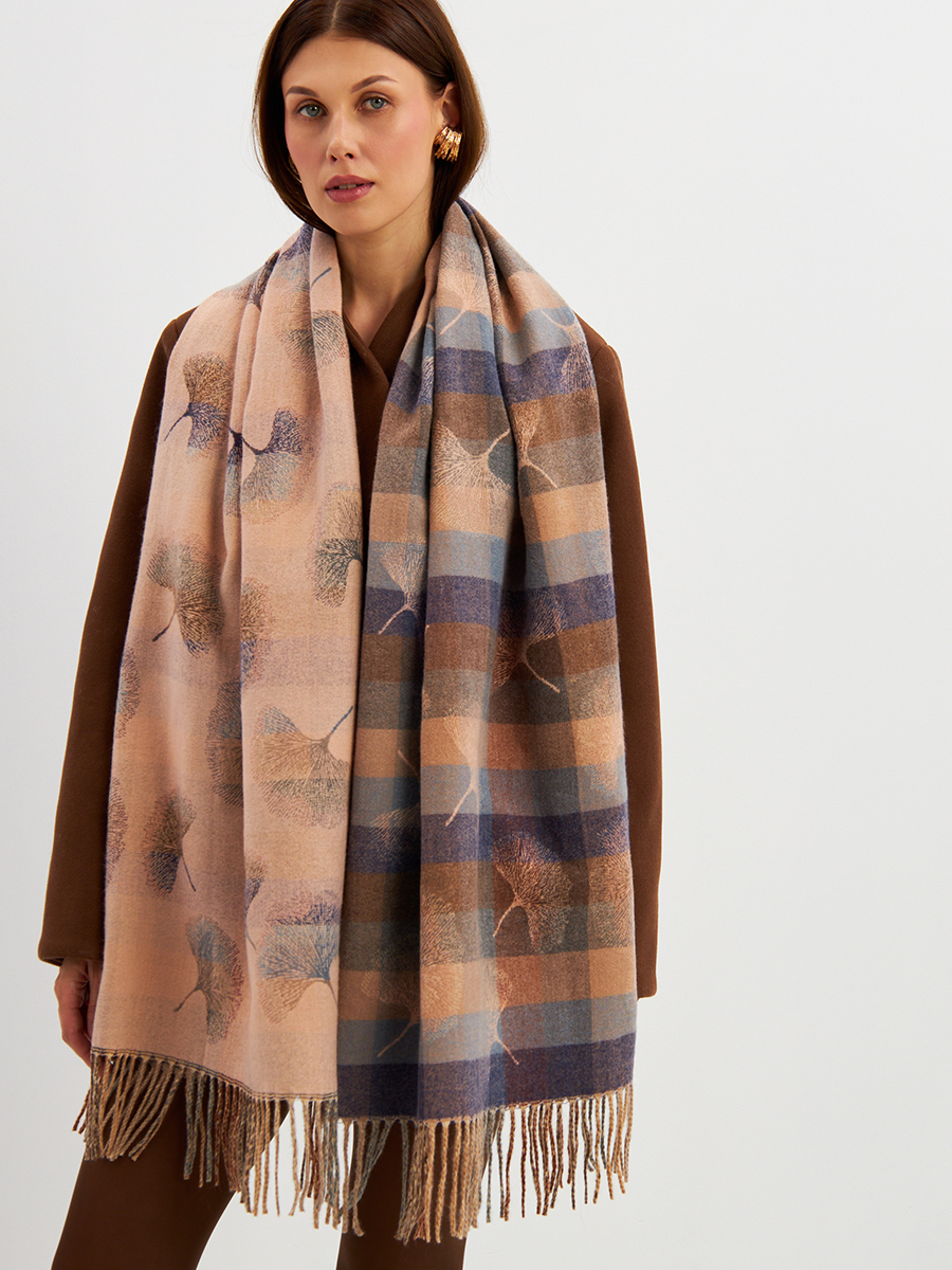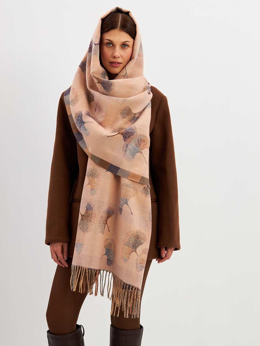 Большой, мягкий, тонкий и очень нежный палантин с рисунком. Края изделия украшены бахромой ручной работы. Машинная деликатная стирка.