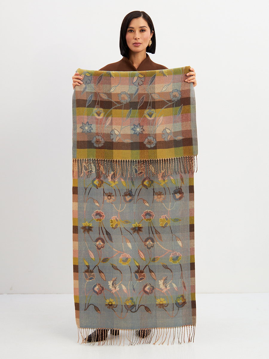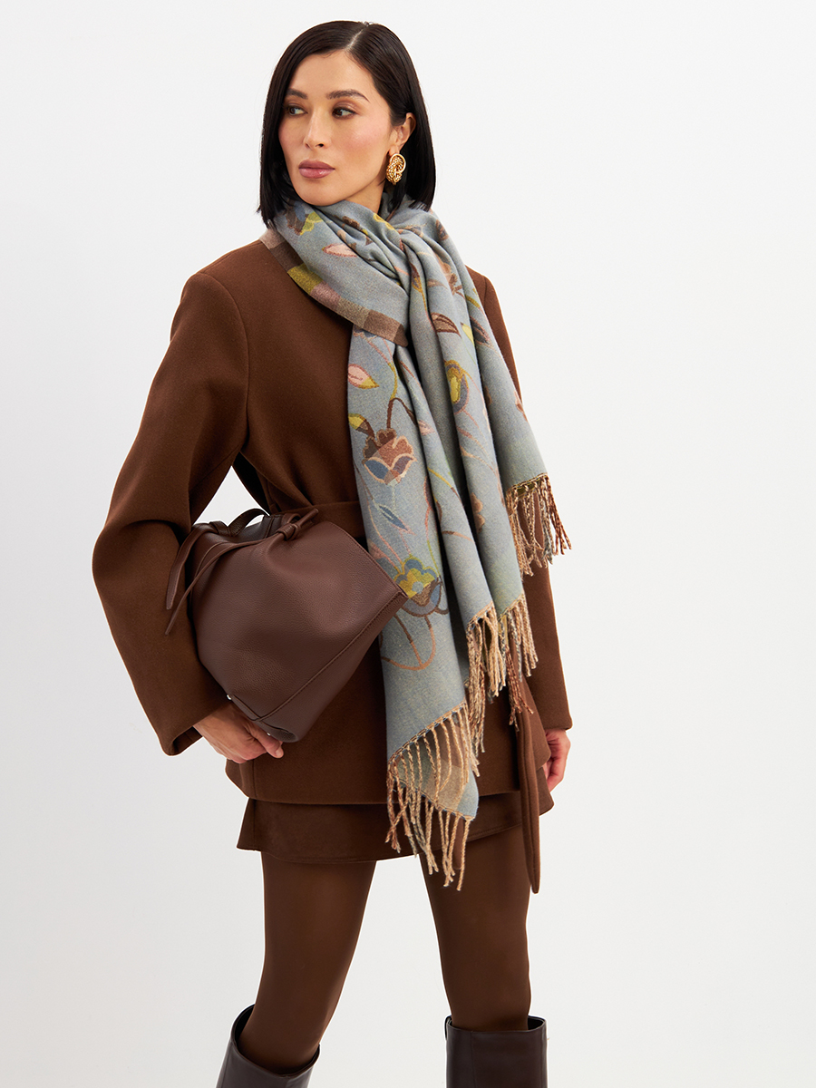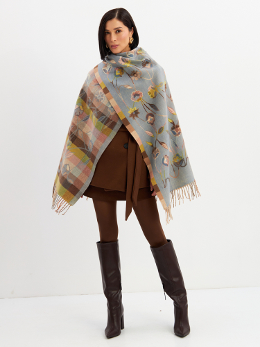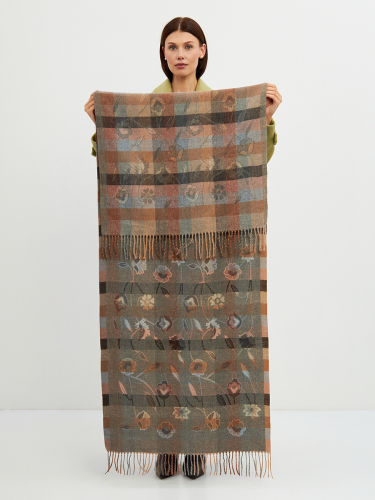 Большой, мягкий, тонкий и очень нежный палантин с рисунком. Края изделия украшены бахромой ручной работы. Машинная деликатная стирка. 55% вискоза/ 25% кашемир/ 20% шерсть