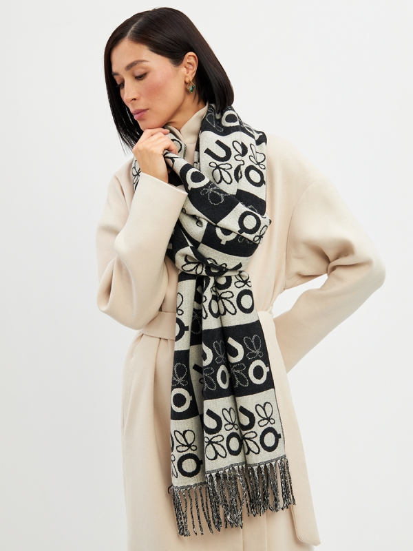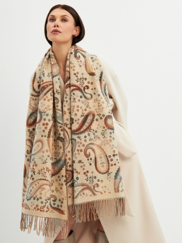 Большой, мягкий, тонкий и очень нежный палантин с рисунком. Края изделия украшены бахромой ручной работы. Машинная деликатная стирка.