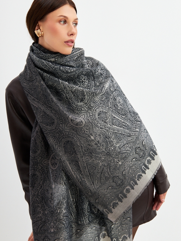 Большой, мягкий, тонкий и очень нежный двусторонний палантин с рисунком. Только ручная стирка. 55% тенсел, 45% вискоза
