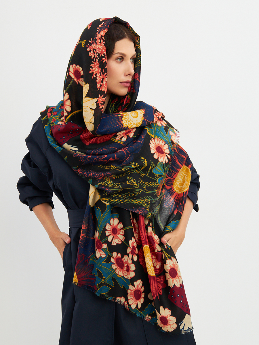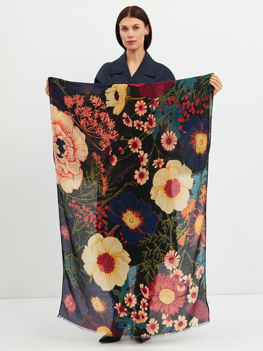 Большой, мягкий, тонкий и очень нежный палантин с рисунком. Только ручная стирка. 55% тенсел, 45% вискоза