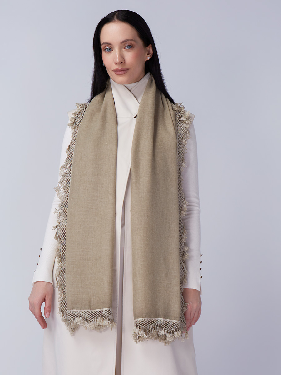 Представляем Вашему вниманию эксклюзивный женский палантин, который станет жемчужиной в ассортименте Вашего бутика или шоурума. Разработанный и произведенный нашими специалистами, этот палантин является образцом высокого качества и актуального дизайна.Исключительное качество: Созданный из тонкого и невероятно мягкого материала, палантин дарит ощущение нежности и комфорта. Его приятная текстура не оставит равнодушными даже самых требовательных покупательниц.Элегантный дизайн: Большой размер позволяет создавать разнообразные стильные образы. Уникальный рисунок гармонично дополняется изысканной кружевной бахромой по краям, что придает изделию особый шарм и утонченность.Универсальность: Этот палантин идеально впишется как в повседневный, так и в более формальный гардероб, предлагая Вашим клиентам безграничные возможности для стилизации. Он станет незаменимым аксессуаром в любое время года.Выгода для бизнеса: Благодаря полному циклу производства TANTINO, мы гарантируем стабильное качество и востребованность продукции. Предложите своим клиентам не просто аксессуар, а воплощение стиля и комфорта, что обеспечит высокий спрос и увеличит Ваши продажи.Рекомендации по уходу: Для сохранения первозданного вида и нежности палантина рекомендуется только ручная стирка. 55% полиэстер, 25% вискоза, 20% хлопок