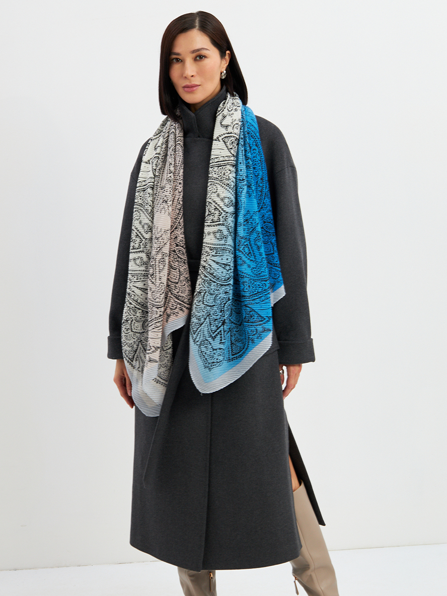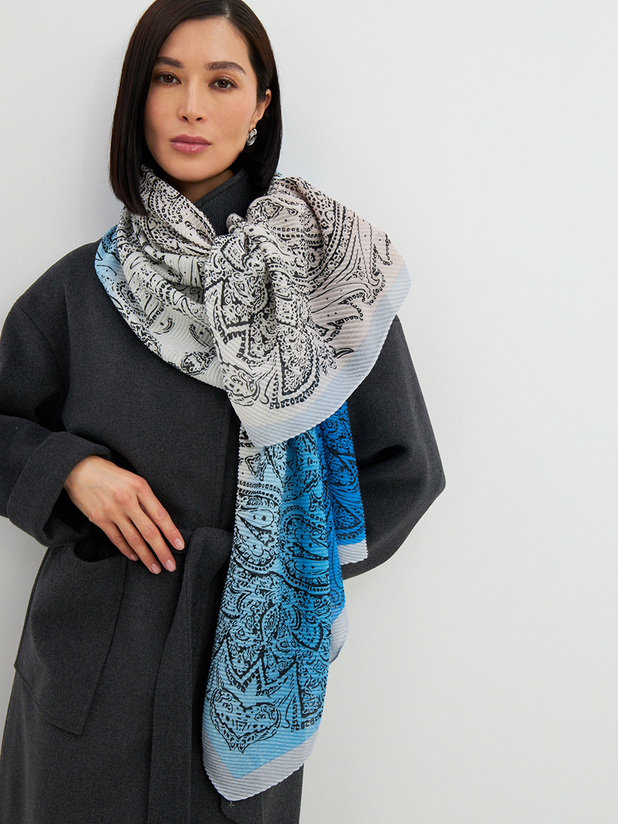 Большой, мягкий, тонкий и очень нежный палантин с рисунком. Ткань жатая. Только ручная стирка. 55% вискоза, 45% полиэстер