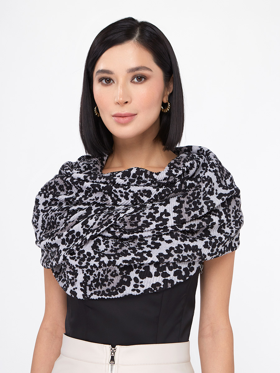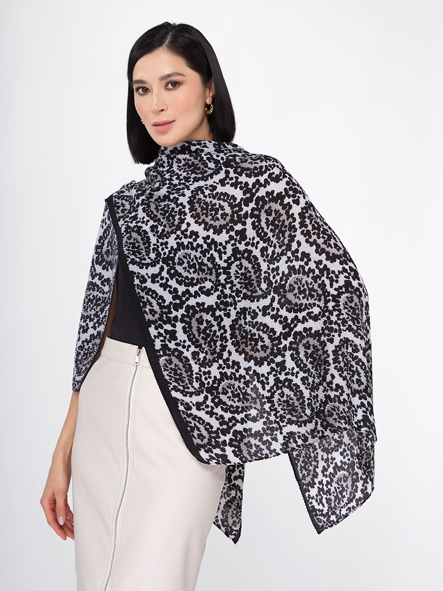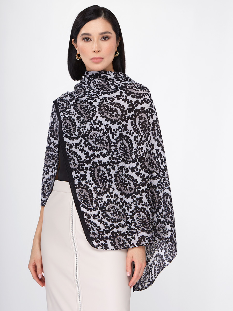 Большой, мягкий, тонкий и очень нежный палантин с рисунком. Ткань жатая. Только ручная стирка. 55% вискоза, 45% полиэстер