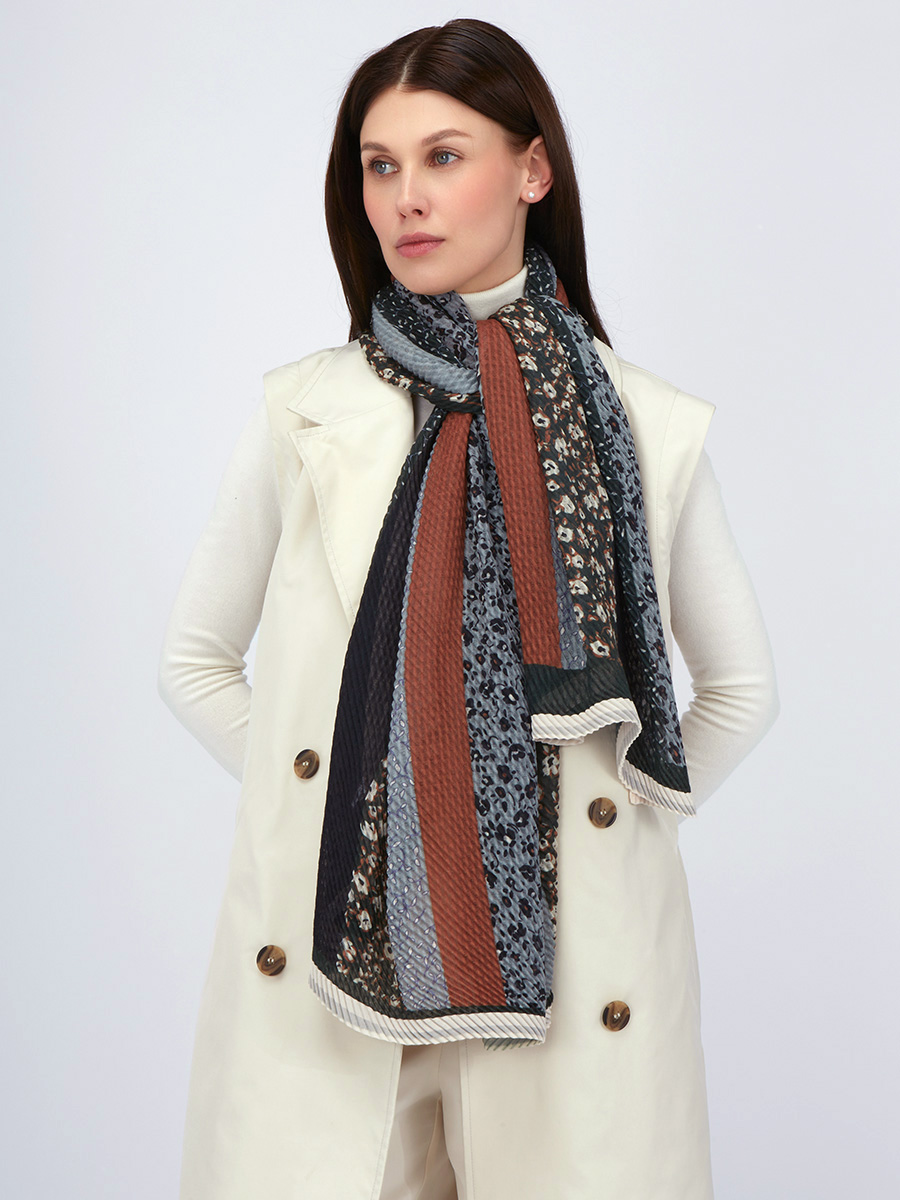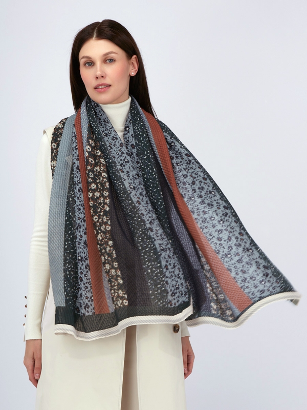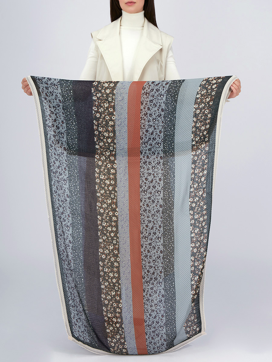 Большой, мягкий, тонкий и очень нежный палантин с рисунком. Ткань жатая. Только ручная стирка. 55% вискоза, 45% полиэстер
