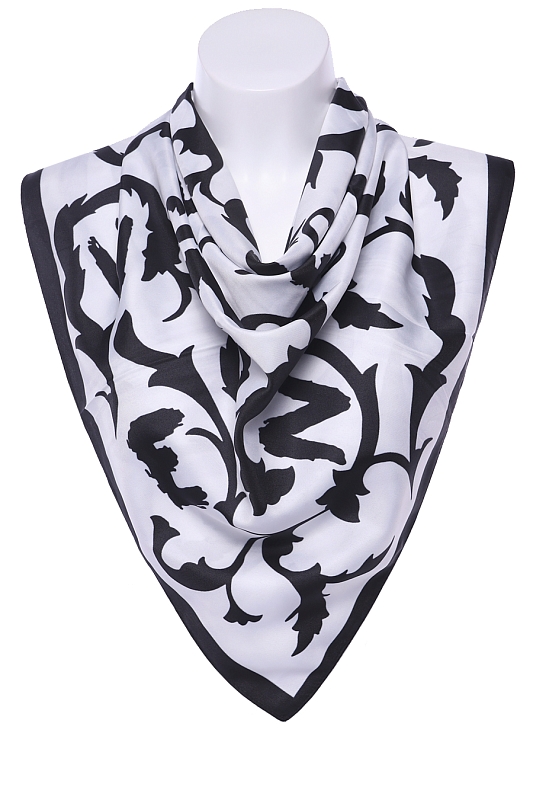 Легкий платок из мягкого искусственного шелка с принтом. Обработка кромки-подрубка.