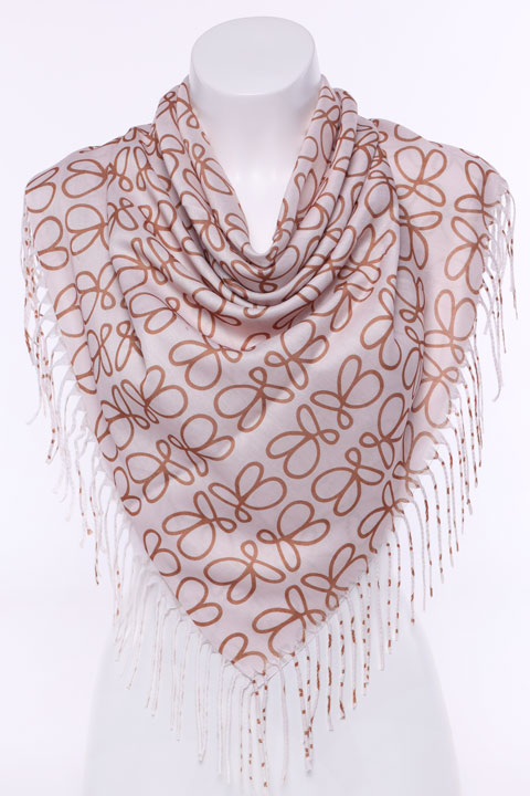 Мягкий, тонкий платок.  На двух противоположных краях платка кисти, два других заканчиваются кромкой.