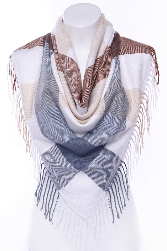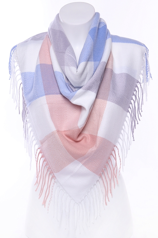 Теплый, мягкий, уютный платок. На двух противоположных краях платка кисти, два других заканчиваются кромкой.