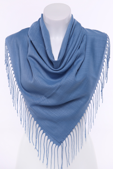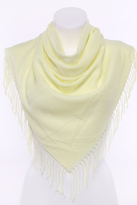 Платок из легкой ткани. На двух противоположных краях платка кисти, два других заканчиваются кромкой.