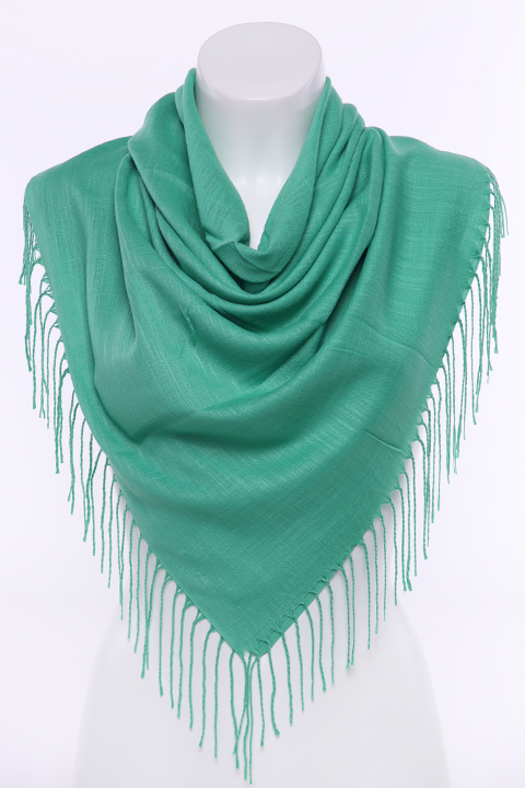 Платок из легкой ткани. На двух противоположных краях платка кисти, два других заканчиваются кромкой.