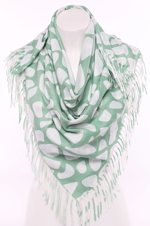 Мягкий, плотный платок. На двух противоположных краях кисти, два других заканчиваются кромкой.