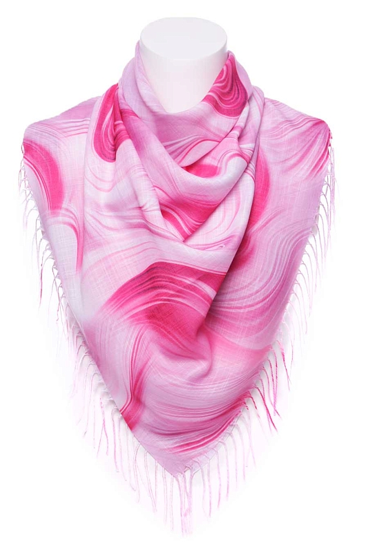 Платок из легкой хлопковой ткани. На двух противоположных краях платка кисти, два других заканчиваются кромкой.