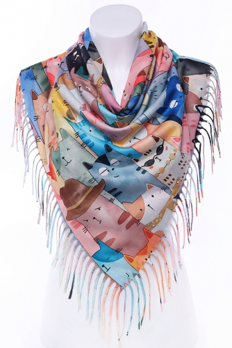 Теплый, мягкий уютный платок. На двух противоположных краях платка кисти, два других заканчиваются кромкой.