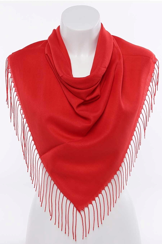 Платок мягкий, тонкий, однотонный. На двух противоположных краях кисти, два других заканчиваются кромкой.