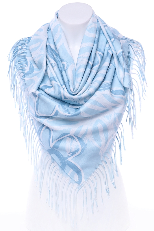 Теплый, мягкий платок.  На двух противоположных краях платка кисти, два других заканчиваются кромкой.