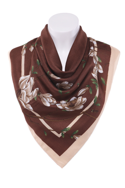 Мягкий платок с цветочным принтом. Оброботка кромки - подрубка.