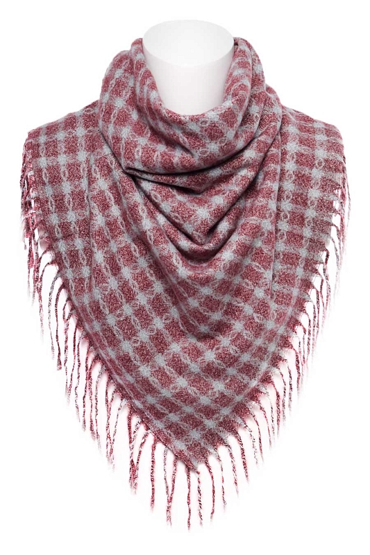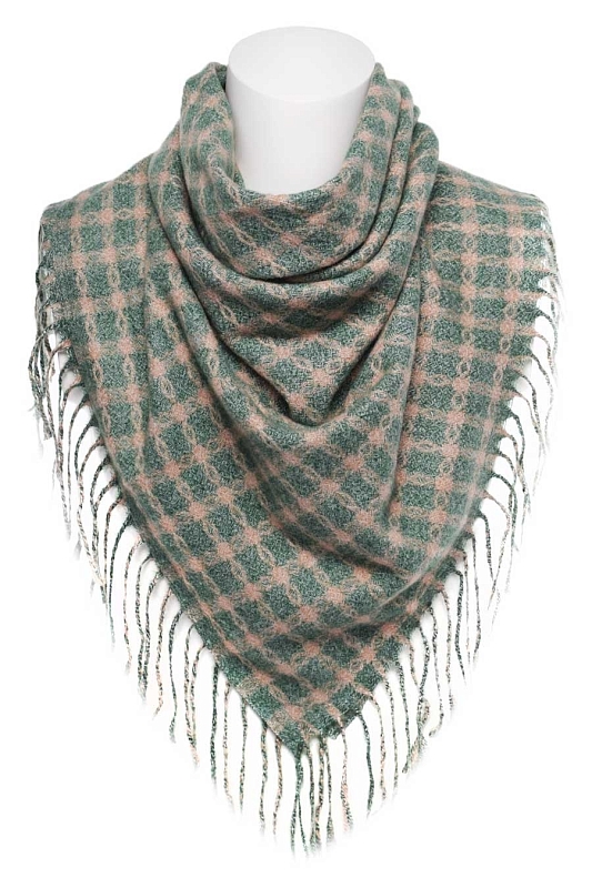 Теплый, мягкий платок.  На двух противоположных краях платка кисти, два других заканчиваются кромкой.