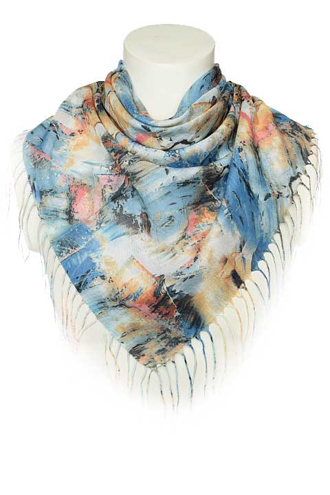 Мягкий, тонкий платок. На двух противоположных краях кисти, два других обработаны швом в подгибку.