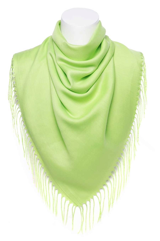 Платок из легкой хлопковой ткани. На двух противоположных краях платка кисти, два других заканчиваются кромкой.