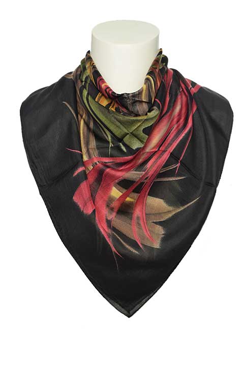 Легкий платок с цветочным принтом. Обработка кромки - подрубка.