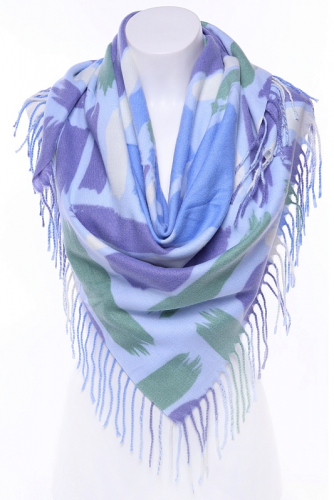Теплый, мягкий платок. На двух противоположных краях кисти, два других заканчиваются кромкой.