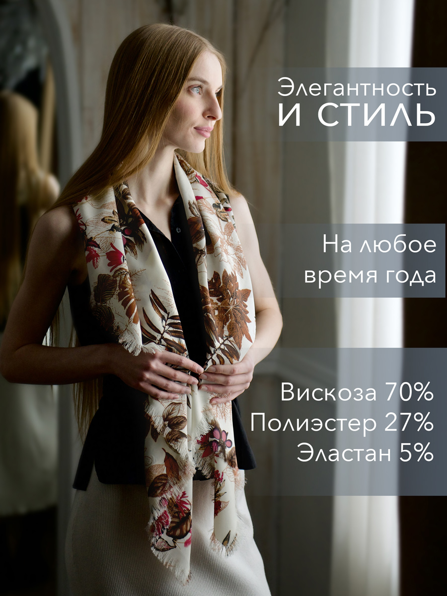Оригинальный платок из вискозы, гармонично подойдет для любого образа, а необычный принт, придаст обворожительности и притягательности вашему наряду. Выбор размера платка, позволит Вам найти идеально подходящий размер именно для Вас. Платок можно завязывать множеством вариантов, что сделает Вас неповторимой и привлекательной.