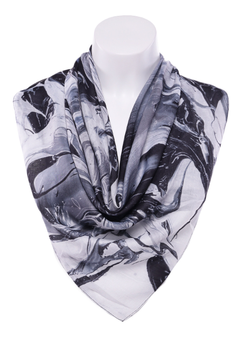 Платок из легкой хлопковой ткани с принтом. Обработка кромки - подрубка.