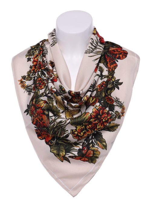 Платок из мягкого искусственного шелка с принтом. Обработка кромки-подрубка.