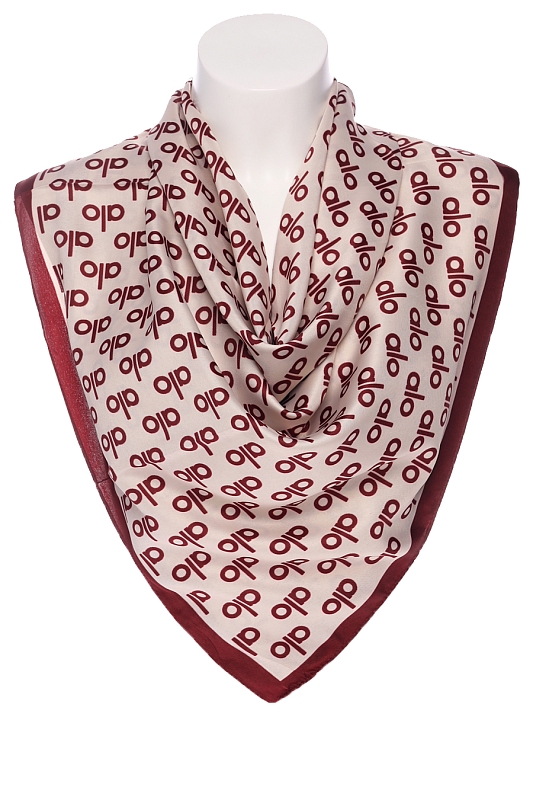 Легкий платок из мягкого искусственного шелка с принтом. Обработка кромки-подрубка.
