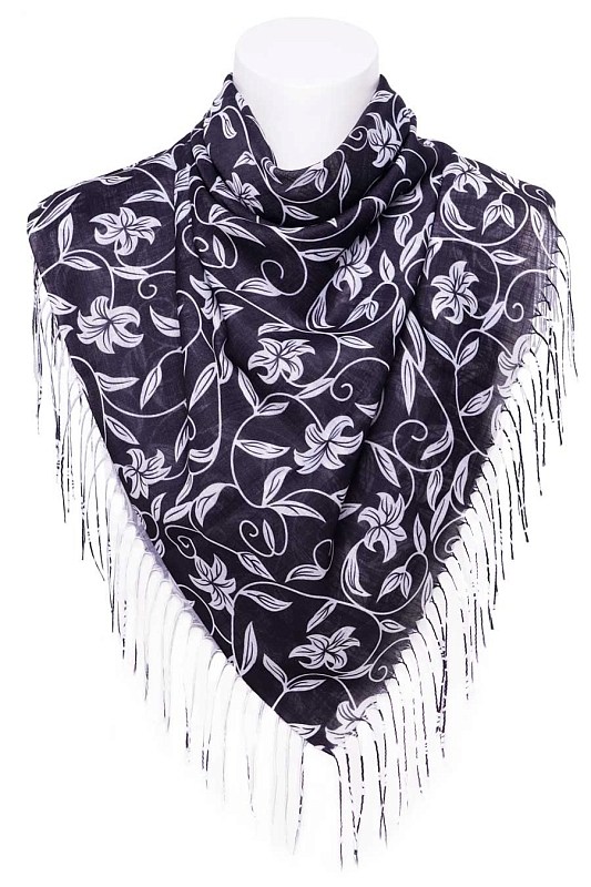 Легкий, тонкий платок. На двух противоположных краях платка кисти, два других заканчиваются кромкой.