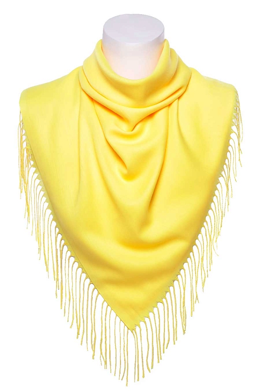 Платок из легкой хлопковой ткани. На двух противоположных краях платка кисти, два других заканчиваются кромко.