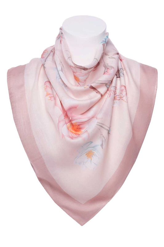Платок из легкой хлопковой ткани с принтом. Обработка кромки - подрубка.