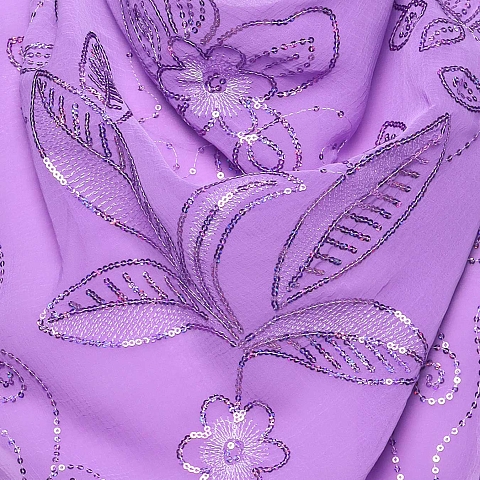 Однотонный платок из тонкого, жатого материала с вышивкой в тон + пайетки.