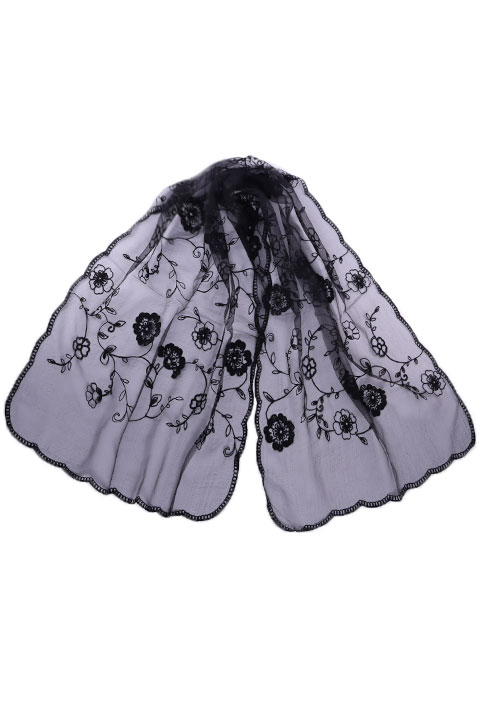 Однотонный шарф из тонкого креп-шифона с вышивкой в тон.