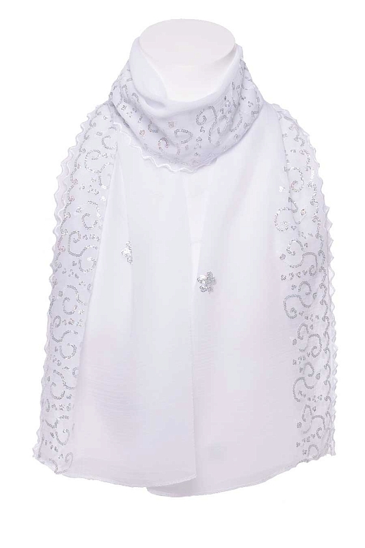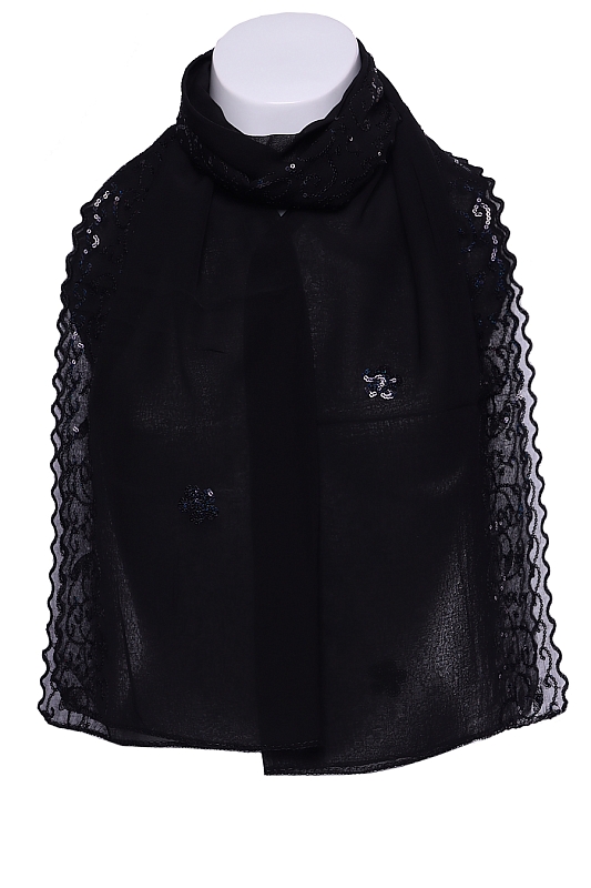 Однотонный шарф из тонкого, жатого материала с вышивкой в тон + пайетки.