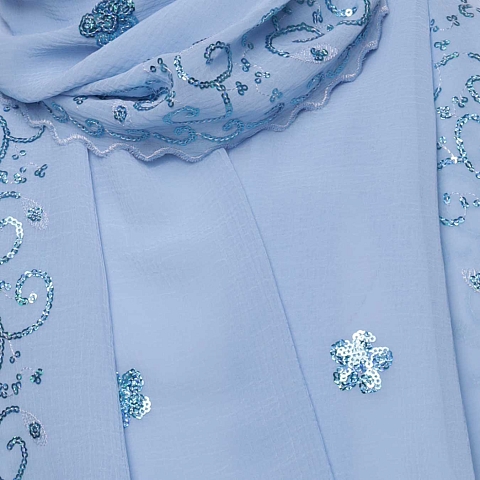 Однотонный шарф из тонкого, жатого материала с вышивкой в тон + пайетки.