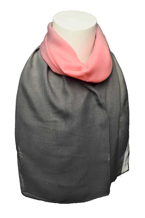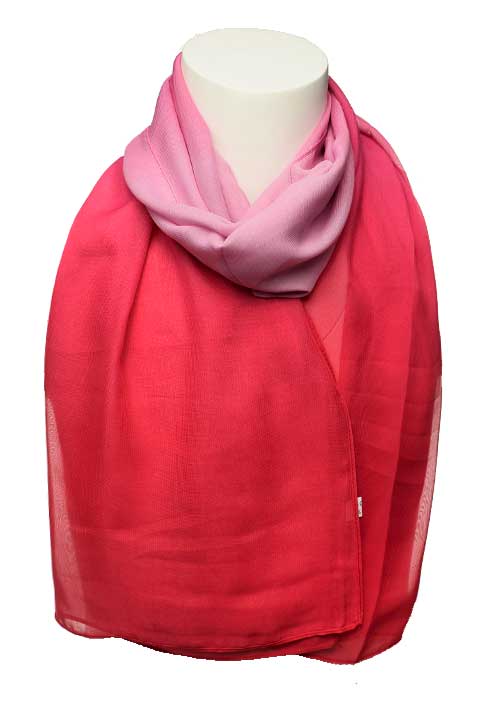 Легкий шарф из шифона. Обработка кромки - подрубка. Шарф с переходом цвета, трехцветный.