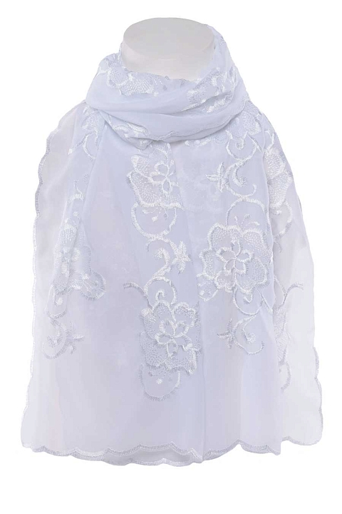 Однотонный шарф из тонкого, жатого материала с вышивкой в тон.