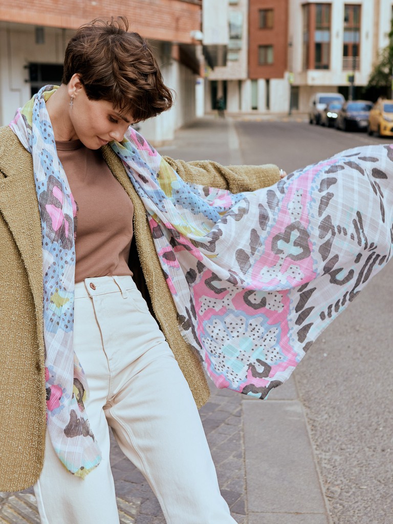 Палантин женский торговой марки Labbra. Состав: 50% хлопок, 50% тенсел. Тип подгибки: реснички. Размер: 93х188см.