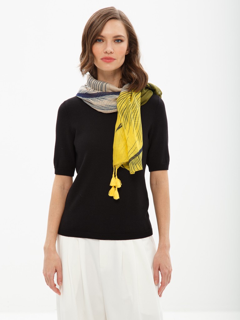 Палантин  женский торговой марки Labbra. Состав: 50% модал, 50% хлопок. Тип подгибки: машинная подгибка, кисти. Размер: 70х180см.