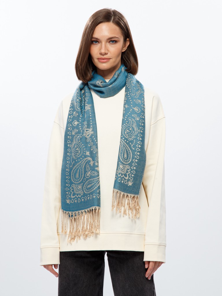 Палантин женский торговой марки Labbra. Состав: 50% шелк, 50% вискоза. Тип подгибки: машинная подгибка, реснички. Размер: 70х180см.