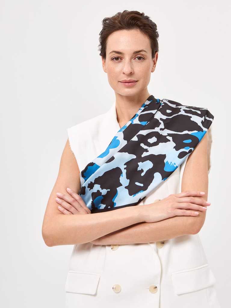 Платок женский торговой марки Labbra. Состав: 50% шелк, 50% вискоза. Тип подгибки: машинная подгибка. Размер: 105х105см.