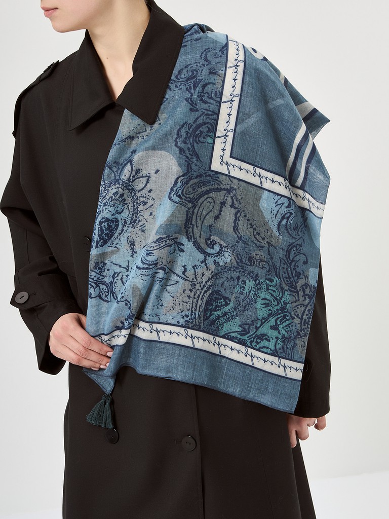 Платок женский торговой марки Labbra. Состав: 70% хлопок, 30% шелк. Тип подгибки: машинная подгибка, кисти. Размер: 115х115см.